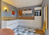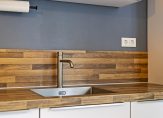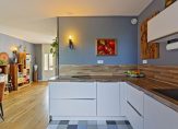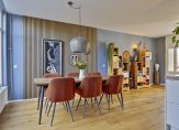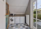 Bij binnenkomst via de entree kom je in de speels ingedeelde en sfeervolle woonkamer en eetkamer. Deze lopen mooi over in de open keuken, die is voorzien van inbouwapparatuur. De inductiekookplaat (Bora) heeft geïntegreerde afzuiging, wat zorgt voor een strakke, moderne look. Achter de keuken bevindt zich de bijkeuken met toegang tot de achtertuin.
