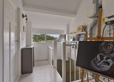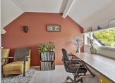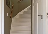 Via de hal bereik je met een vaste trap de eerste verdieping, waar je drie slaapkamers vindt en een moderne badkamer. De badkamer is voorzien van een inloopdouche, ligbad én een recent vernieuwd toilet. Op de tweede verdieping vind je een ruime vierde slaapkamer of werkkamer, die door de dakverhoging extra veel lichtinval en ruimte heeft én een panoramisch uitzicht.