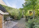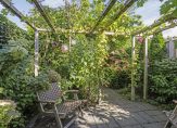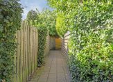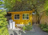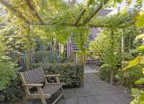 De tuin (met achterom) is op een natuurlijke wijze aangelegd en biedt verrassende plekjes om in de zomer zowel in de zon als schaduw te kunnen zitten. Achter in de tuin staat een sfeervol, vrijstaand houten schuurtje, perfect voor het opbergen van fietsen, gereedschap of tuinspullen.