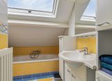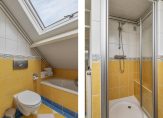 Hier vind je drie slaapkamers, waarvan ƩƩn met een dakkapel voor extra ruimte en licht. De badkamer is compleet uitgerust met een bad, douche en een wastafelmeubel.