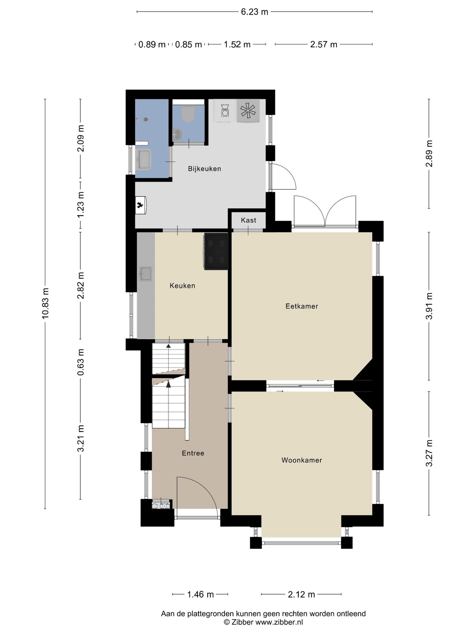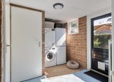 De keuken is praktisch ingedeeld en sluit aan op de bijkeuken, die zowel via de tuin als de keuken bereikbaar is – handig voor al je extra opslag en huishoudelijke apparaten zoals de wasmachine en droger. Op de begane grond vind je ook de badkamer, wat een fijn praktisch voordeel is. Op de eerste verdieping bevinden zich drie slaapkamers. De tweede verdieping bestaat uit een zolder.