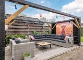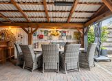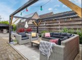 Het perceel biedt volop privacy en ruimte. De oostelijk gelegen tuin beschikt over een grote garage/schuur en een sfeervolle overkapping, perfect voor zomerse dagen en gezellige avonden buiten.