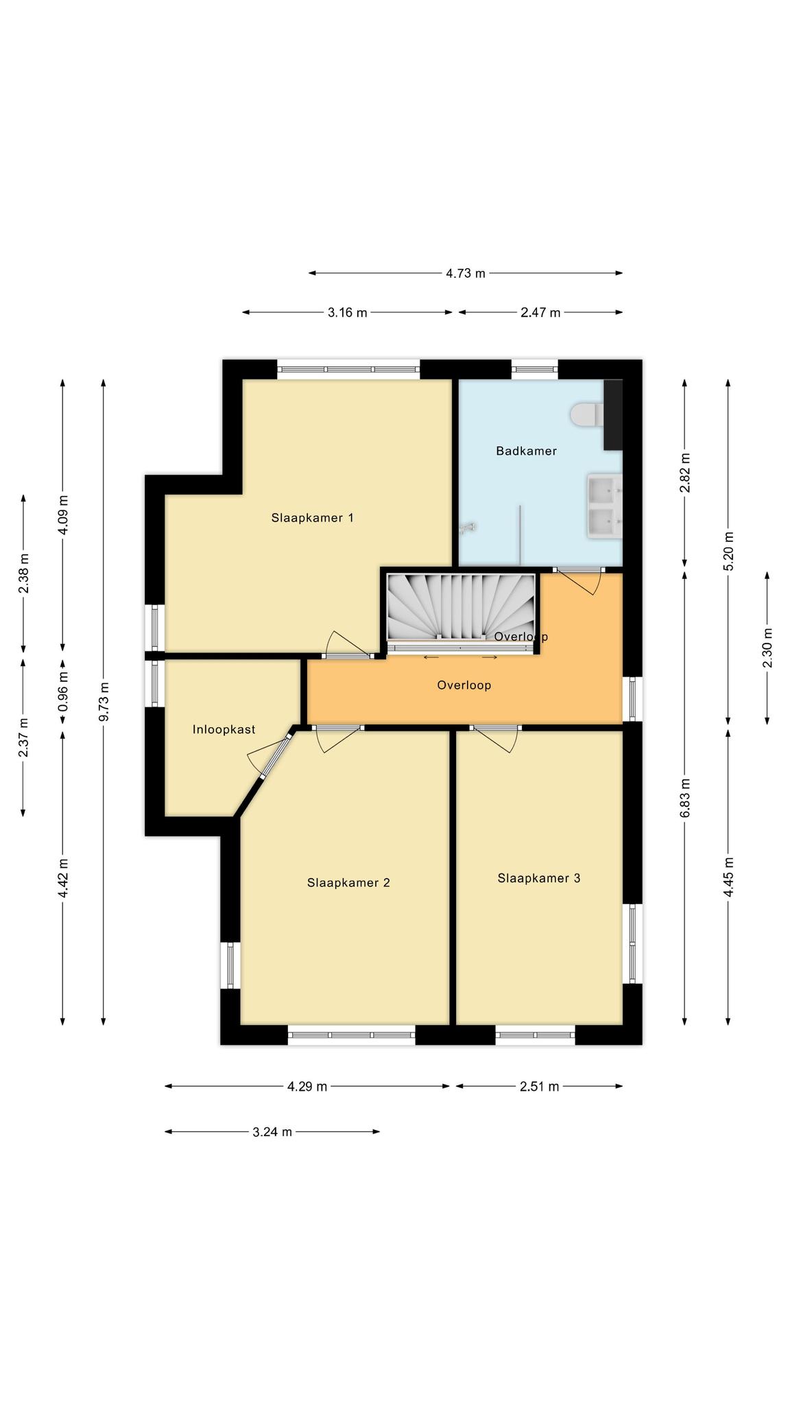 Op de eerste verdieping bevinden zich drie ruime slaapkamers, allen keurig afgewerkt. De moderne badkamer is voorzien van een inloopdouche, een tweede toilet en een wastafelmeubel.