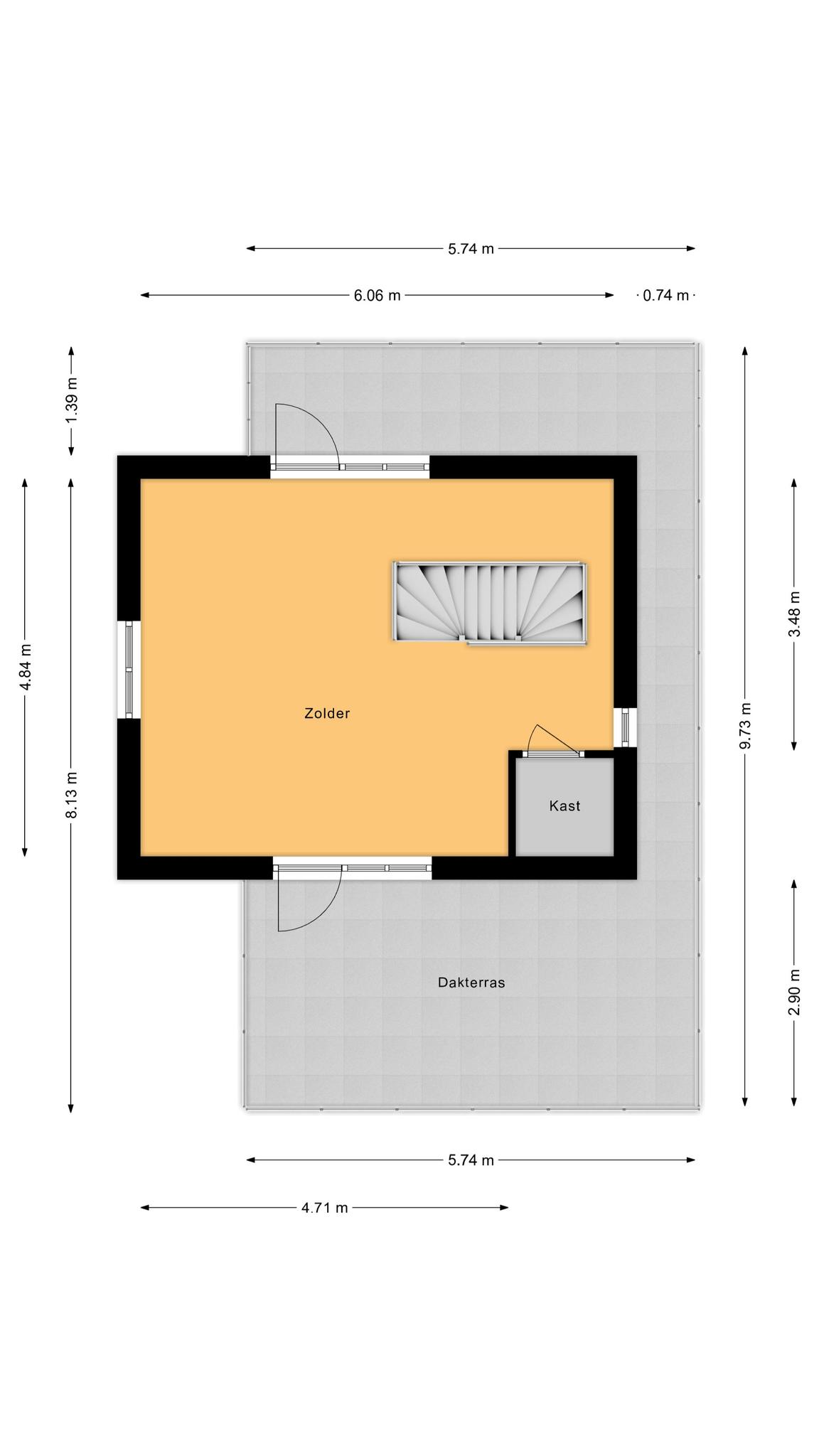 Vanuit de tweede verdieping kun je, door middel van een ladder, de ruime bergzolder betreden. De bergzolder is 25 m².