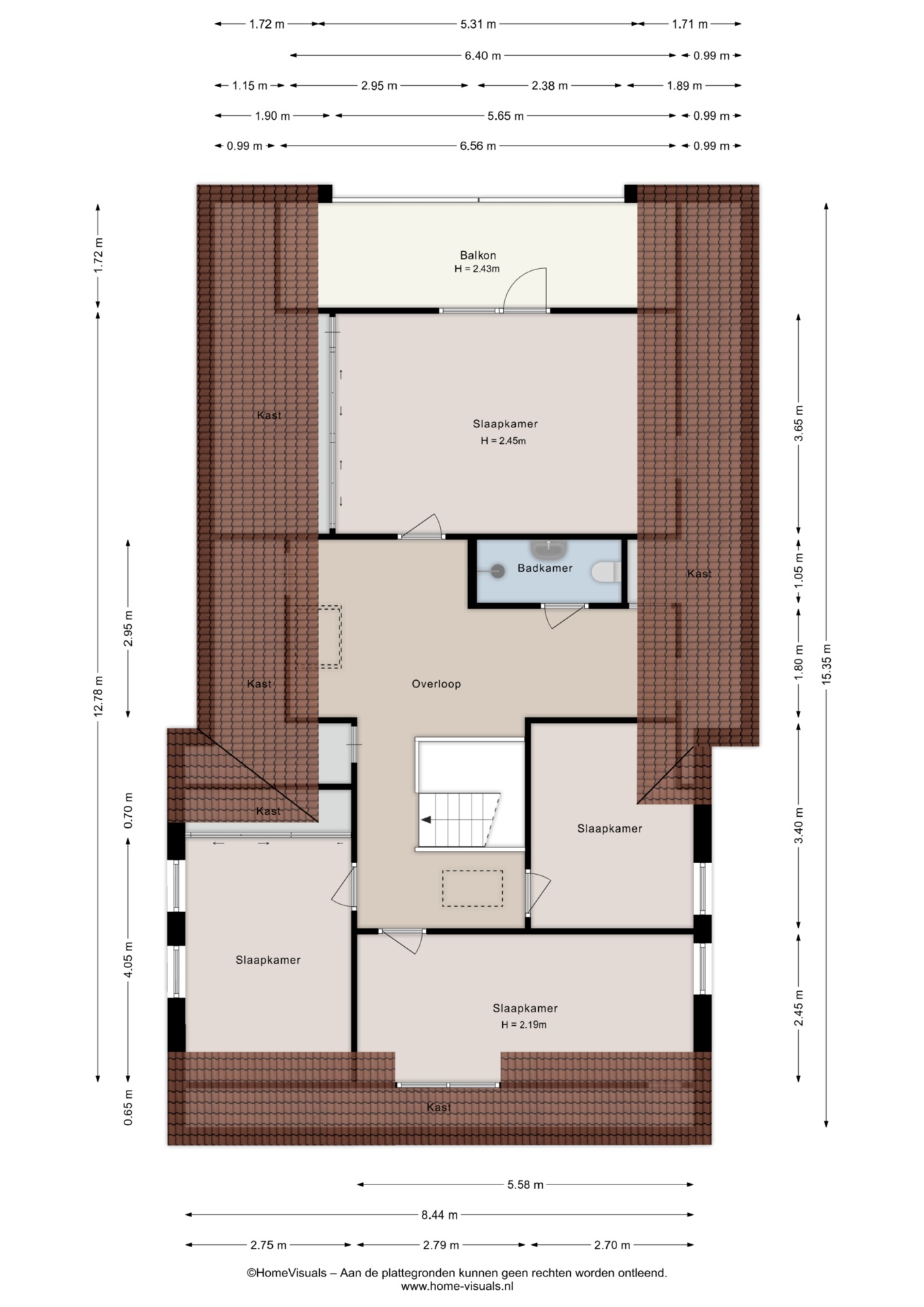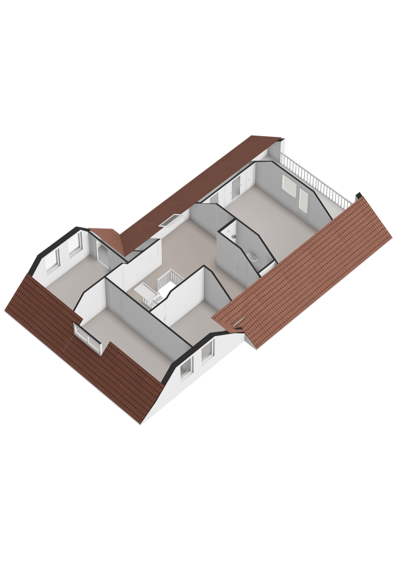 De overloop biedt toegang tot vier slaapkamers, waarvan één met balkon. Daarnaast is er een tweede badkamer met toilet, douche en wastafel.