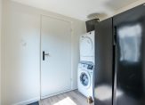 Je komt binnen in de hal met een modern toilet en de trap naar boven. De woonkamer aan de voorkant is lekker licht en ruim en kijkt uit op de rustige straat. Aan de achterkant vind je de open keuken, compleet met moderne inbouwapparatuur, en heb je toegang tot de zonnige achtertuin. Perfect voor gezellige zomeravonden! Daarnaast beschikt de woning op de begane grond over vloerverwarming en 14 zonnepanelen.