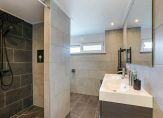 Hier zijn drie ruime slaapkamers en een moderne badkamer met douche, wastafel en een tweede toilet. De grote ramen zorgen voor veel natuurlijk licht.
