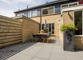 De onderhoudsvriendelijke achtertuin op het zuidoosten biedt veel privacy. Een heerlijke plek om te ontspannen met een terras en genoeg ruimte voor een speelplek of loungehoek.