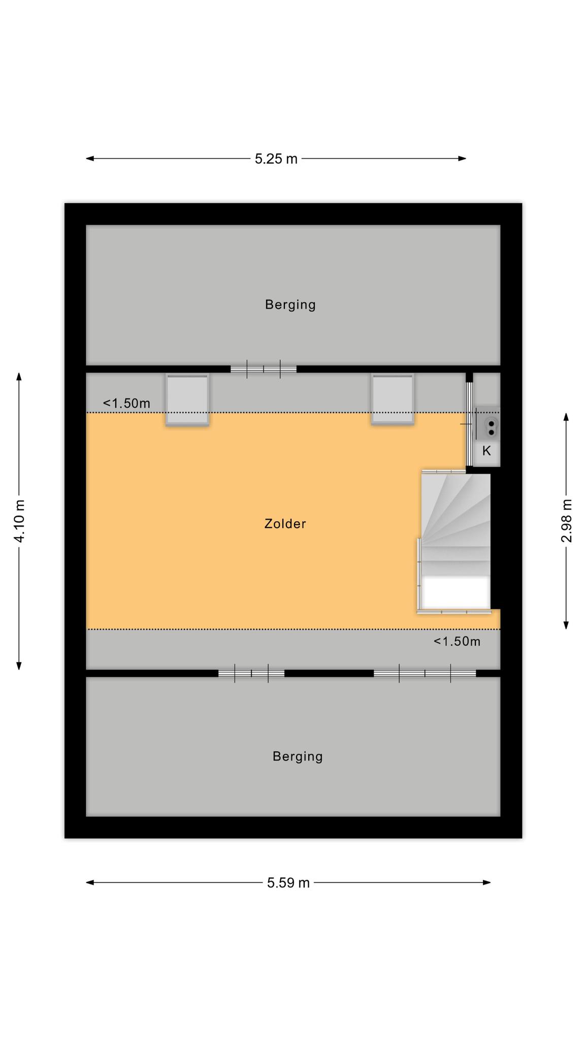 De ruime zolder biedt veel mogelijkheden. Heb je de wens voor een groot gezin of hebben jullie al een groot gezin? Nu wordt de zolder gebruikt als opbergruimte, maar je kunt er makkelijk een vierde slaapkamer of hobbyruimte van maken.