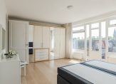 Het appartement is gelegen op een geliefde locatie en biedt een prachtig uitzicht op de winkelstraat vanaf het zonnige balkon. Dankzij de grote raampartijen geniet je van veel natuurlijk lichtinval, wat zorgt voor een fijne, open sfeer in de hele woning.