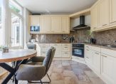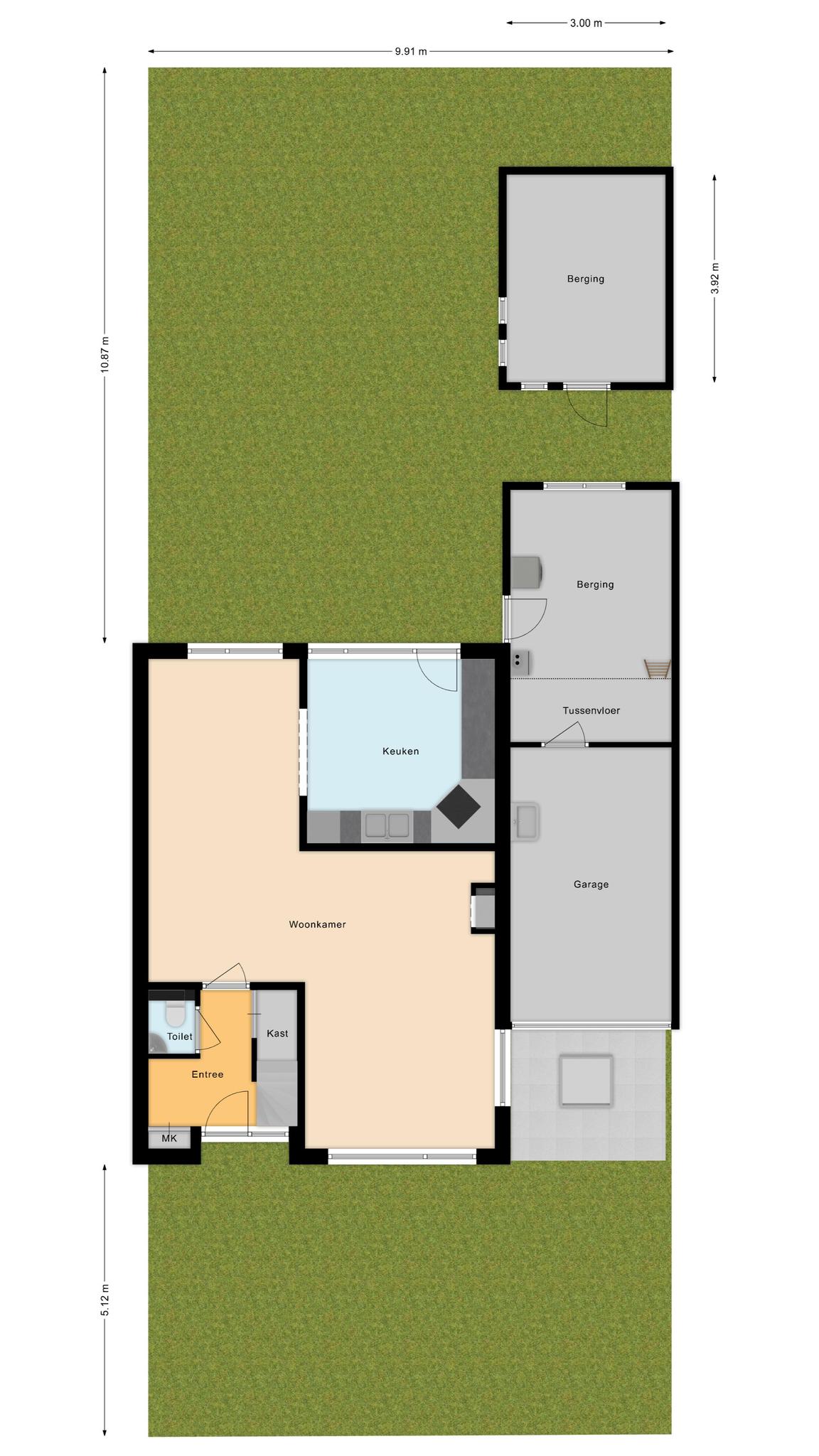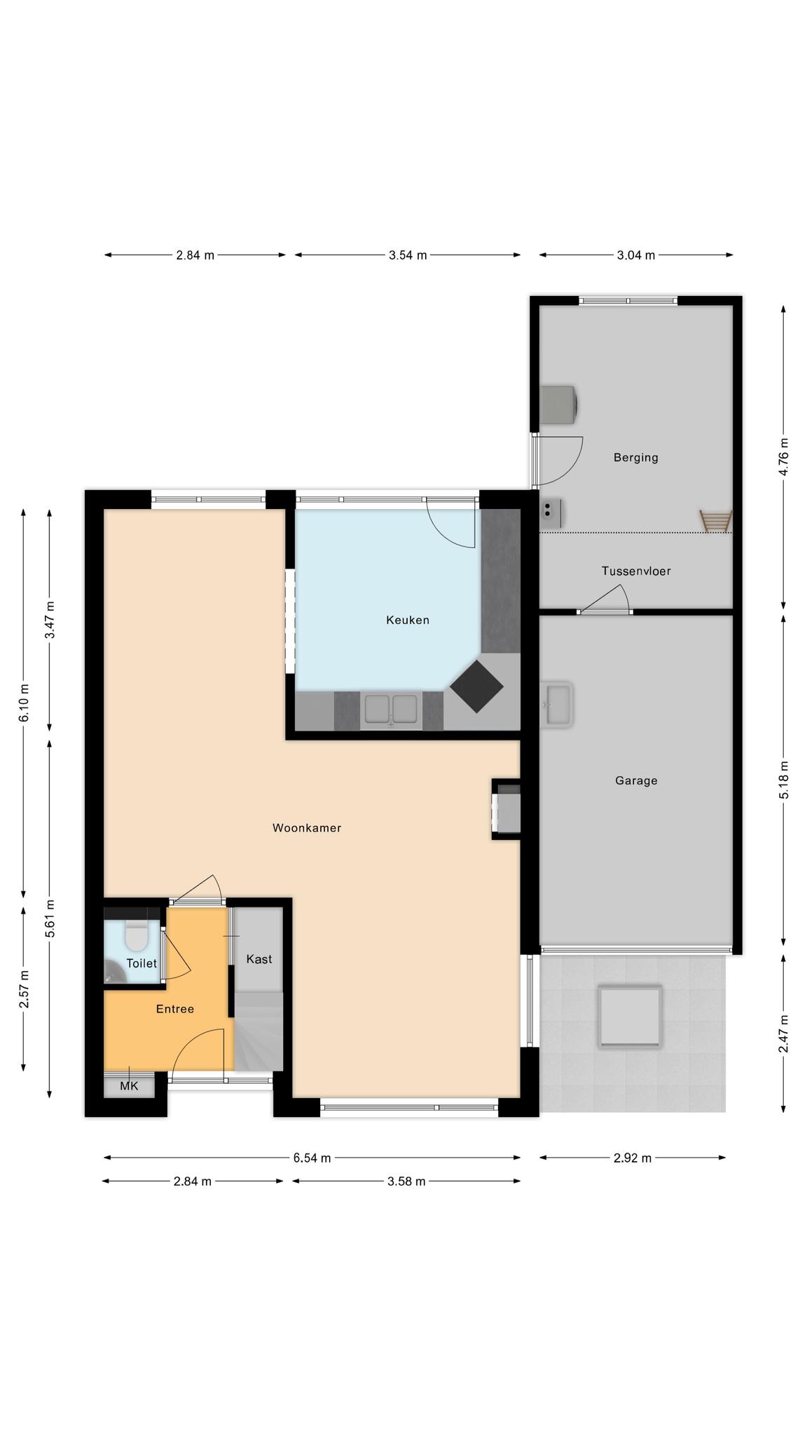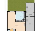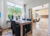 Je komt binnen in de hal met een toilet met toegang tot de woonkamer. Aansluitend aan de woonkamer bevindt zich de half open keuken. Vanuit de keuken is de zonrijke tuin te bereiken.