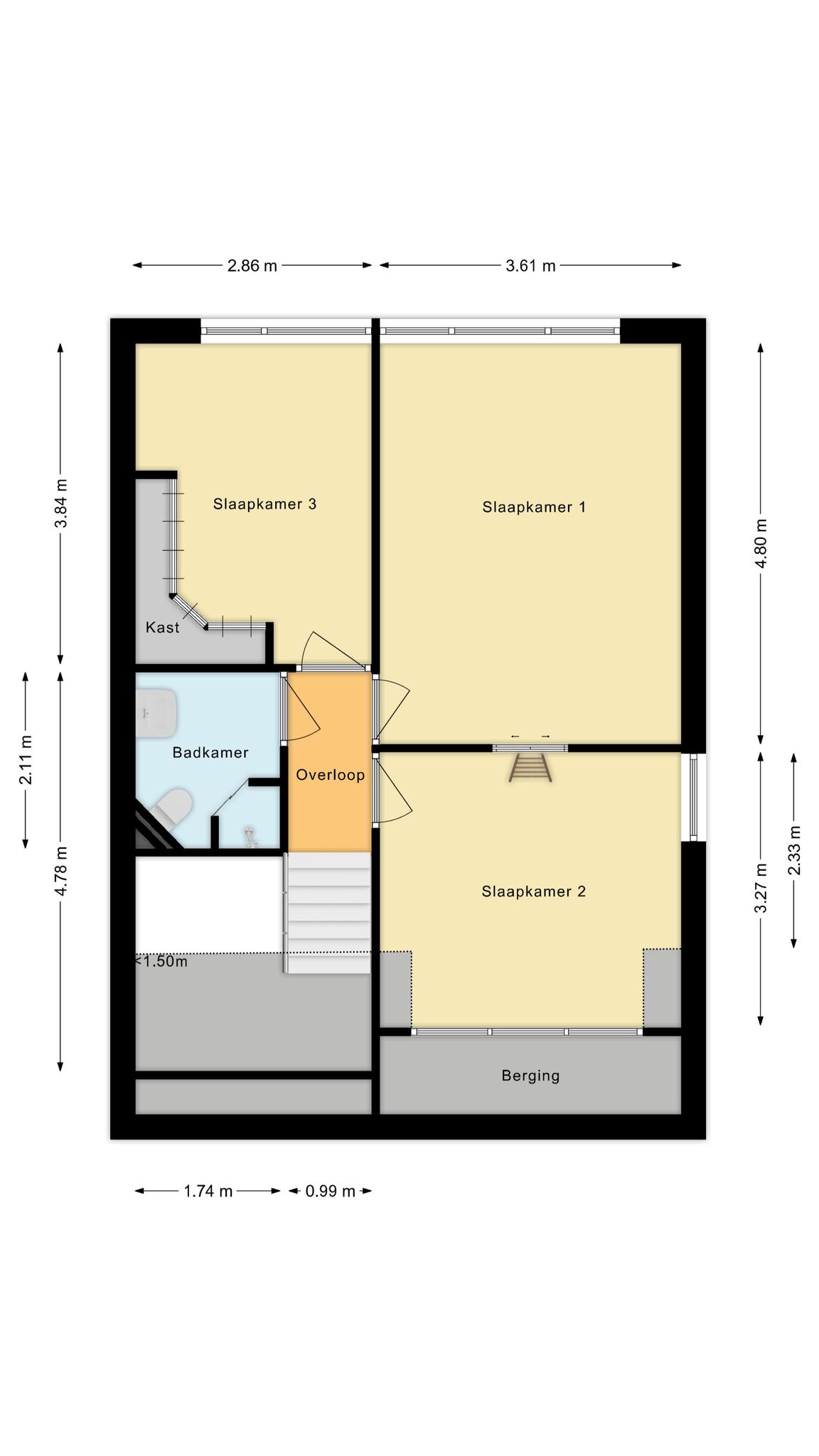 De eerste verdieping is voorzien van drie slaapkamers, een overloop en badkamer. De badkamer is voorzien van een douche, tweede toilet en wastafelmeubel.
