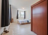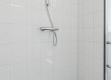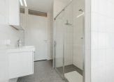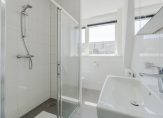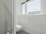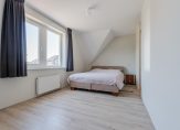 Op de verdieping bevinden zich twee ruime slaapkamers en een keurig afgewerkte badkamer met een inloopdouche, tweede toilet en een wastafelmeubel. De overloop biedt toegang tot de vaste trap naar de tweede verdieping.