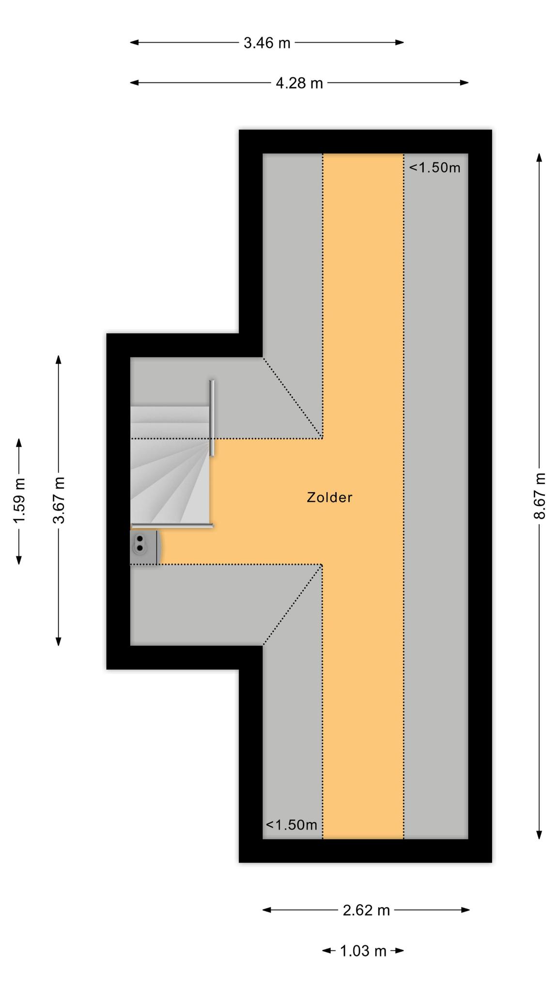 Een ruime bergzolder, voorzien van cv-opstelling en voldoende mogelijkheden voor het realiseren van een extra slaapkamer of werkruimte. Door het plaatsen van een dakraam op zolder kan het woonoppervlak vergroot worden naar 125 m².