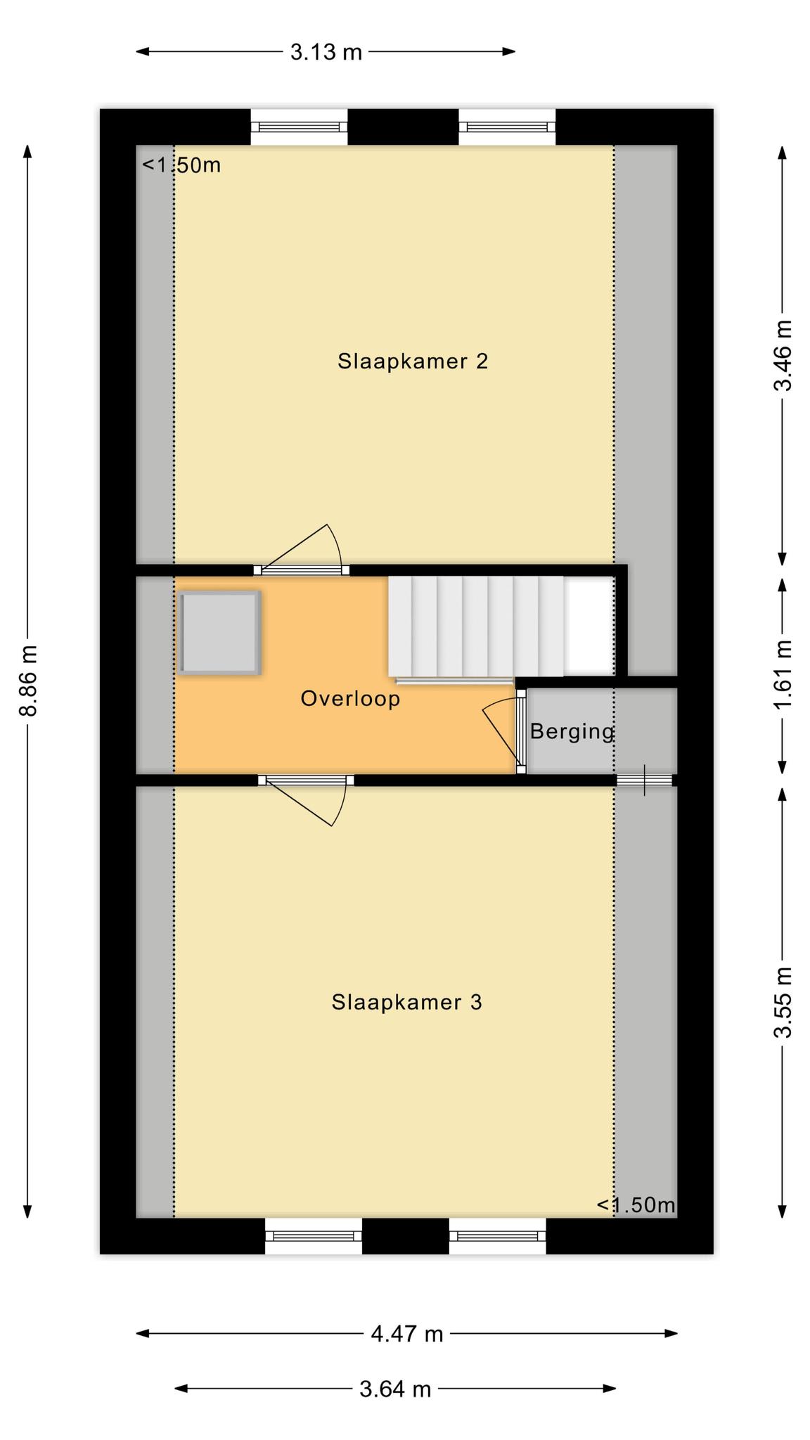 Op de eerste verdieping bevinden zich nog twee ruime slaapkamers.