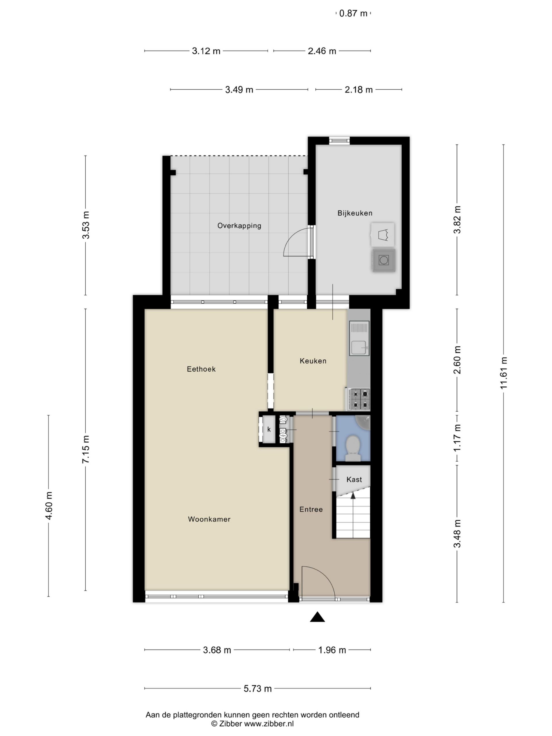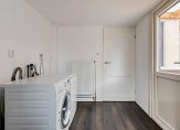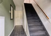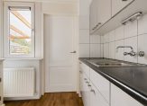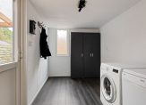Hal/entree met toilet en trapopgang, lichte doorzonwoonkamer met een prettig uitzicht aan de voorzijde. De dichte keuken en grenst aan de royale bijkeuken, waar zich de aansluitingen voor wasmachine en droger bevinden.