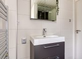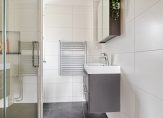 Overloop met toegang tot drie slaapkamers en een nette badkamer (vernieuwd in 2017) uitgerust met douche, badmeubel, designradiator en tweede toilet.