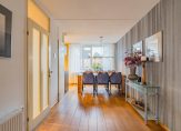 Bij binnenkomst valt meteen de verzorgde staat van de woning op. De ruime hal biedt toegang tot een toilet en de royale L-vormige woonkamer. Deze lichte woonkamer heeft een open karakter en biedt via grote raampartijen zicht op de rustige straat aan de voorzijde. Aansluitend aan de woonkamer ligt de open keuken, compleet met moderne inbouwapparatuur uit 2021. De bijkeuken, direct naast de keuken gelegen, biedt praktische opbergruimte en geeft toegang tot de garage.