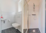 Je komt binnen in een ruime entree/hal met een toilet met doorgang naar de woonkamer. De royale L-vormige woonkamer beschikt over een erker en openslaande terrasdeuren en de moderne open keuken is van alle inbouwapparatuur voorzien. Daarnaast is er een bijkeuken met wasmachineaansluiting en een comfortabele slaapkamer met doucheruimte, voorzien van een douche, wastafelmeubel, designradiator en een tweede toilet.
