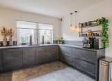Royale entree met garderobe, modern toilet en trapopgang naar de verdieping. Sfeervolle, tuingerichte woonkamer met openslaande deuren naar de zonnige achtertuin. Ruime, vernieuwde keuken in praktische U-opstelling, uitgerust met alle benodigde inbouwapparatuur.