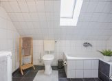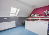 Nette badkamer. Slaapkamer op de begane grond – ook ideaal te gebruiken als praktijk- of werkruimte dankzij een eigen entree. Via een vaste trap is hier een extra multifunctionele hobbykamer bereikbaar, voorzien van dakramen.
