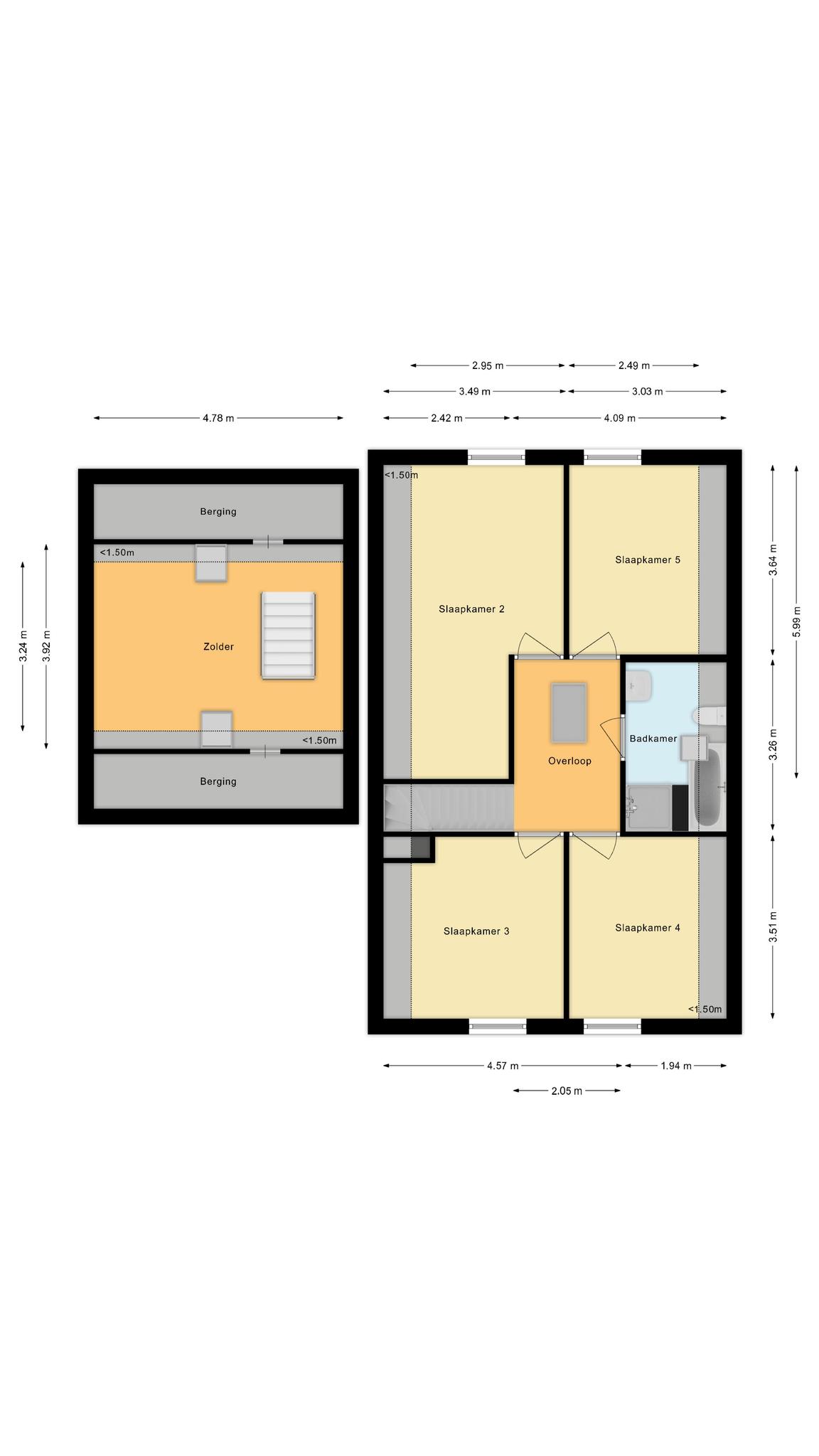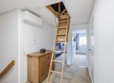 Een praktische vlizotrap leidt naar de zolderberging op de tweede verdieping.