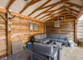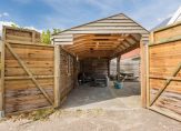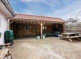 – Vrijstaande houten garage met elektra, ideaal als werkplaats of voor stalling