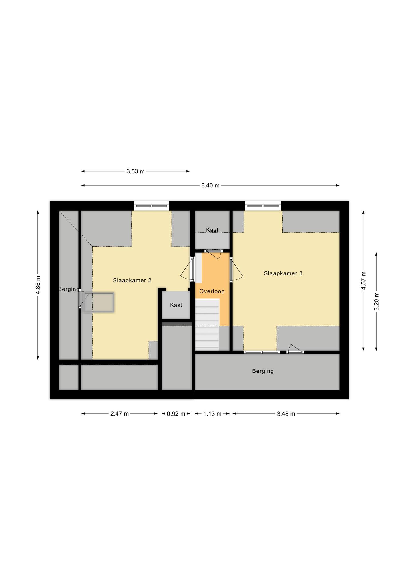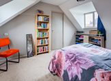 Overloop met berging en twee ruime slaapkamers voorzien van ingebouwde kastruimte.