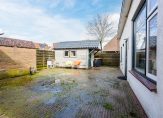 Een helft van een dubbel woonhuis met houten schuur/berging en een besloten tuin op zonzijde.