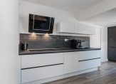 Je komt binnen in de hal met toilet en toegang tot de lichte woonkamer. De open keuken uit 2020 is modern en praktisch ingericht en grenst aan de bijkeuken en de garage. Hier heb je genoeg ruimte voor opslag en dagelijkse klusjes.