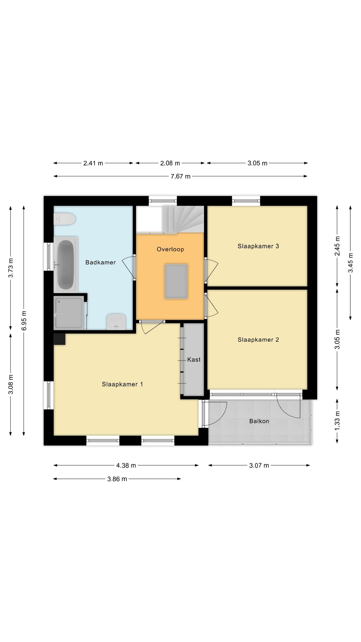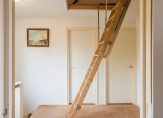 Op de eerste verdieping bevinden zich drie slaapkamers en een badkamer met ligbad, douche en een tweede toilet. Middels een vlizotrap bereik je de tweede verdieping, waar zich een handige zolderberging bevindt.