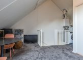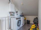 De ruime tweede verdieping is netjes afgewerkt en biedt veel mogelijkheden. Je vindt hier een vierde slaapkamer, de opstelling voor de cv-ketel, wasmachine en droger. Dankzij de twee dakramen is de ruimte licht en goed te gebruiken als werkkamer of hobbyruimte.