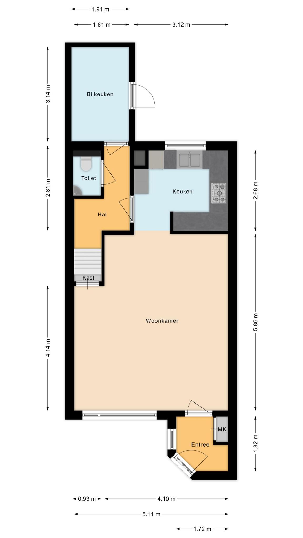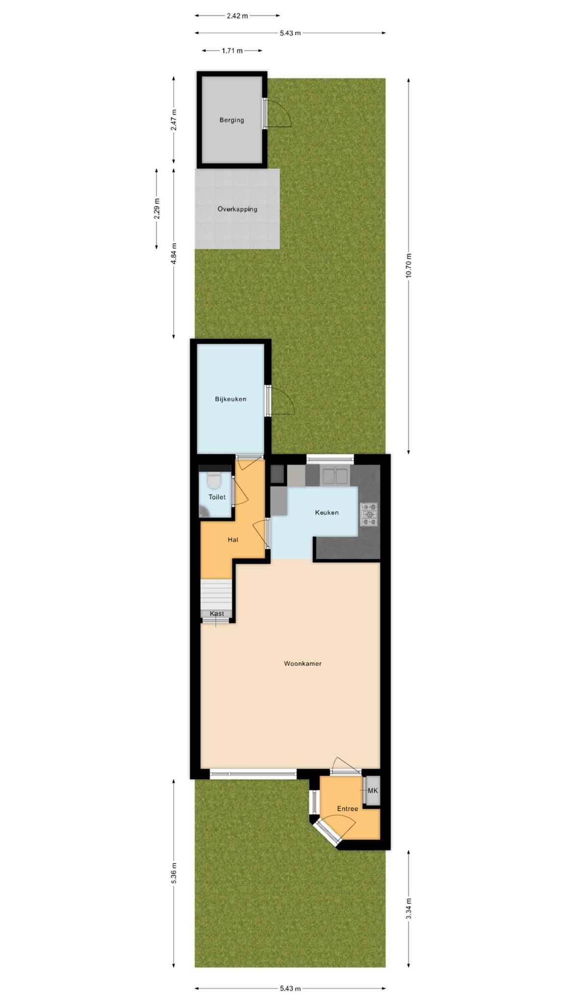 Bij binnenkomst tref je de hal met de nieuwe meterkast, een toilet en de trap naar de eerste verdieping. De lichte woonkamer biedt een prettige leefruimte en staat in open verbinding met de keuken. De keuken is voorzien van inbouwapparatuur. Vanuit de keuken heb je toegang tot de achtertuin op het zuiden, waar je de hele dag van de zon kunt genieten.