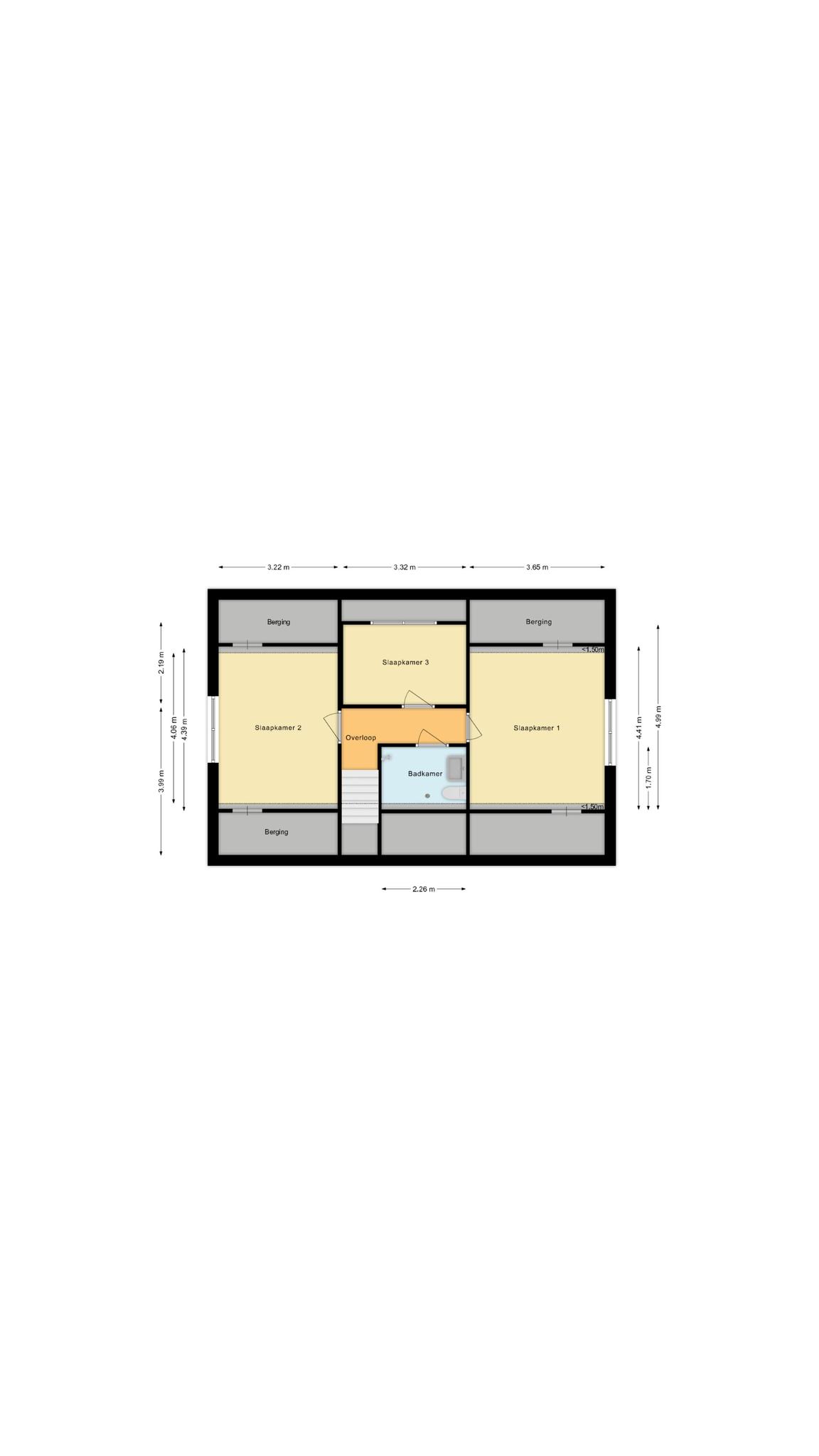 Op de eerste verdieping vind je drie ruime slaapkamers, allen met veel natuurlijk licht en voldoende ruimte. De badkamer is voorzien van een douche, een toilet en een badmeubel.