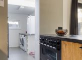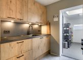 Bij binnenkomst betreed je de ruimte entree waar zich het moderne toilet bevindt en de trapopgang naar de eerste verdieping. Vanuit de hal is er toegang tot de woonkamer en de keuken met eethoek. De woonkamer beschikt over een ruime opstelling en is voorzien van een pelletkachel. De keuken is voorzien van een speelse opstelling met een schiereiland. De keuken is voorzien van inbouwapparatuur waaronder een heetwaterkraan. Vanuit de keuken is er toegang tot de bijkeuken én de tuin. Via de bijkeuken is er toegang tot de aangebouwde garage (met vliering) met aansluitend een overkapping.