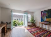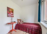 Op de eerste verdieping bevinden zich een tweede toilet, een ruime slaapkamer aan de voorzijde en aan de achterzijde een ruime woonkamer met Frans balkon en uitzicht op de tuin.