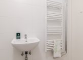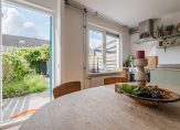 Stap binnen in een ruime hal met aan de voorzijde een kleine slaap- of werkkamer. Daarnaast bevindt zich de badkamer, vernieuwd in 2025. Aan de achterzijde is er een ruime woonkeuken met toegang tot de fijne, zonnige tuin.