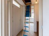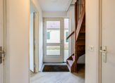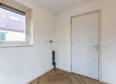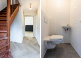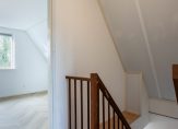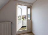 Op de begane grond vind je de hal met toilet en trapopgang, een gezellige L-vormige woonkamer met terrasdeuren naar de tuin, een luxe open keuken met moderne inbouwapparatuur en een handige bijkeuken/berging. Op de bovenverdieping zijn drie slaapkamers, waarvan twee met balkon en een badkamer met douche, toilet en vaste wastafel. De bergzolder is bereikbaar via een vlizotrap en biedt extra opbergruimte.