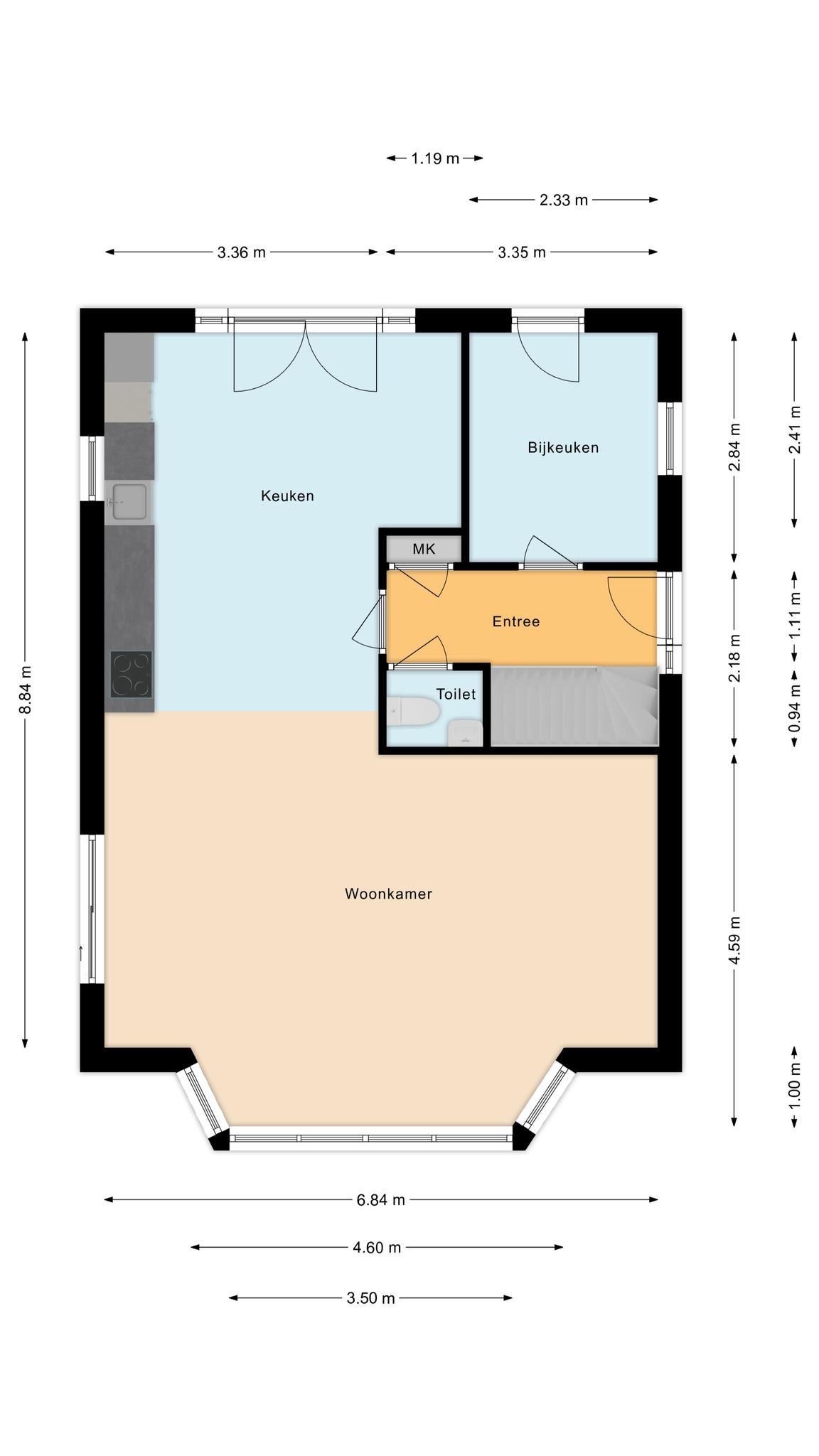 – Vloerverwarming op de begane grond