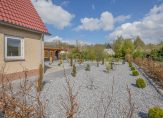 De vrijstaande woning beschikt over een houten schuur met overkapping, perfect voor het opbergen van fietsen en andere benodigdheden. Houd je van lange, gezellige avonden? Dan weet jij je wel raad met deze overkapping!