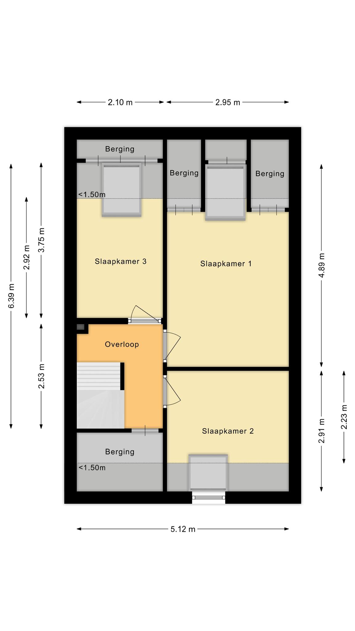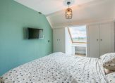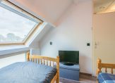 Op de eerste verdieping biedt de overloop extra bergruimte en toegang tot drie slaapkamers. Alle slaapkamers zijn voorzien van Velux dakramen met verduisterende rolgordijnen. In 2019 zijn de kamers gemoderniseerd met een fraaie laminaatvloer en strak afgewerkte wanden.