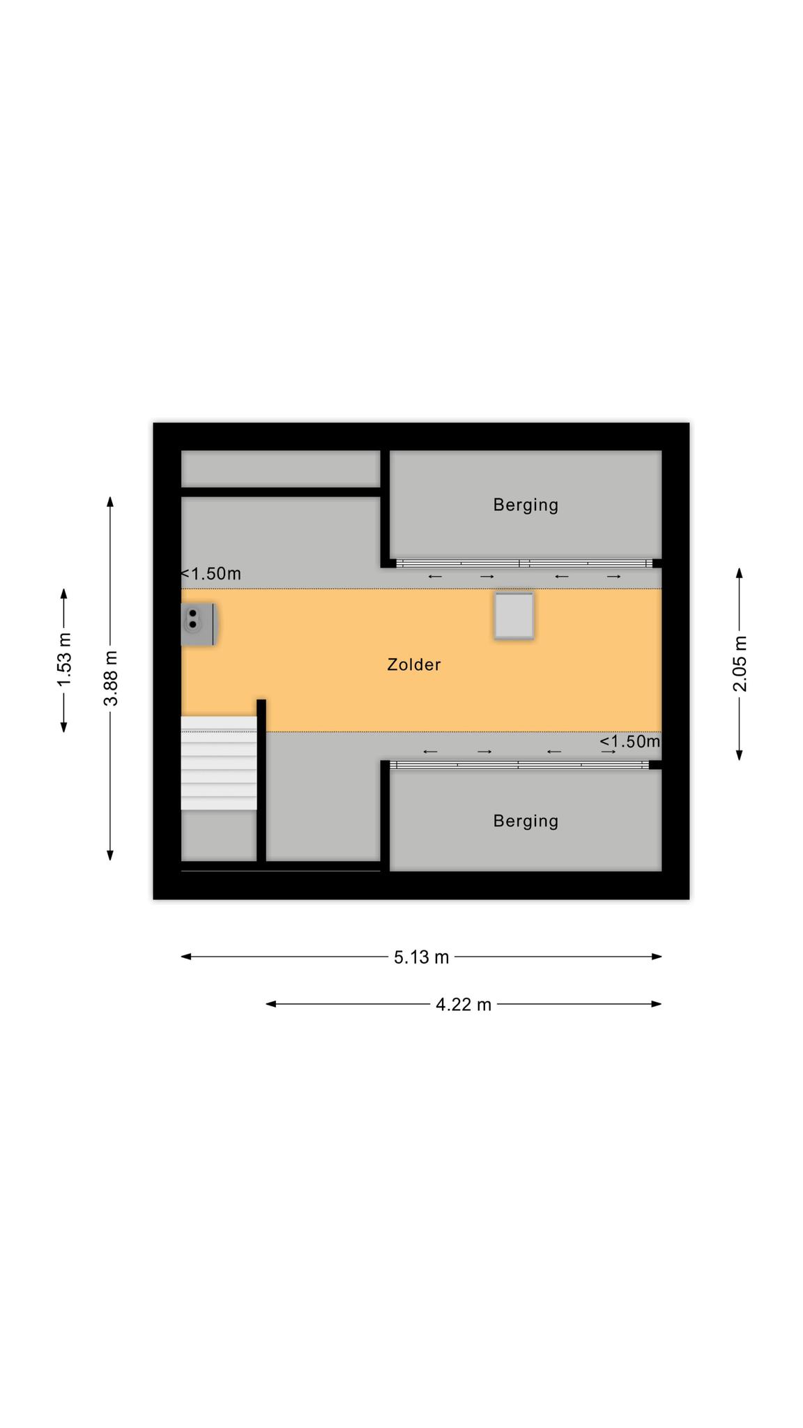 De ruime zolder biedt de mogelijkheid voor het creëren van een vierde slaapkamer. Hier bevindt zich ook de verdeler van de zonnepanelen.