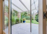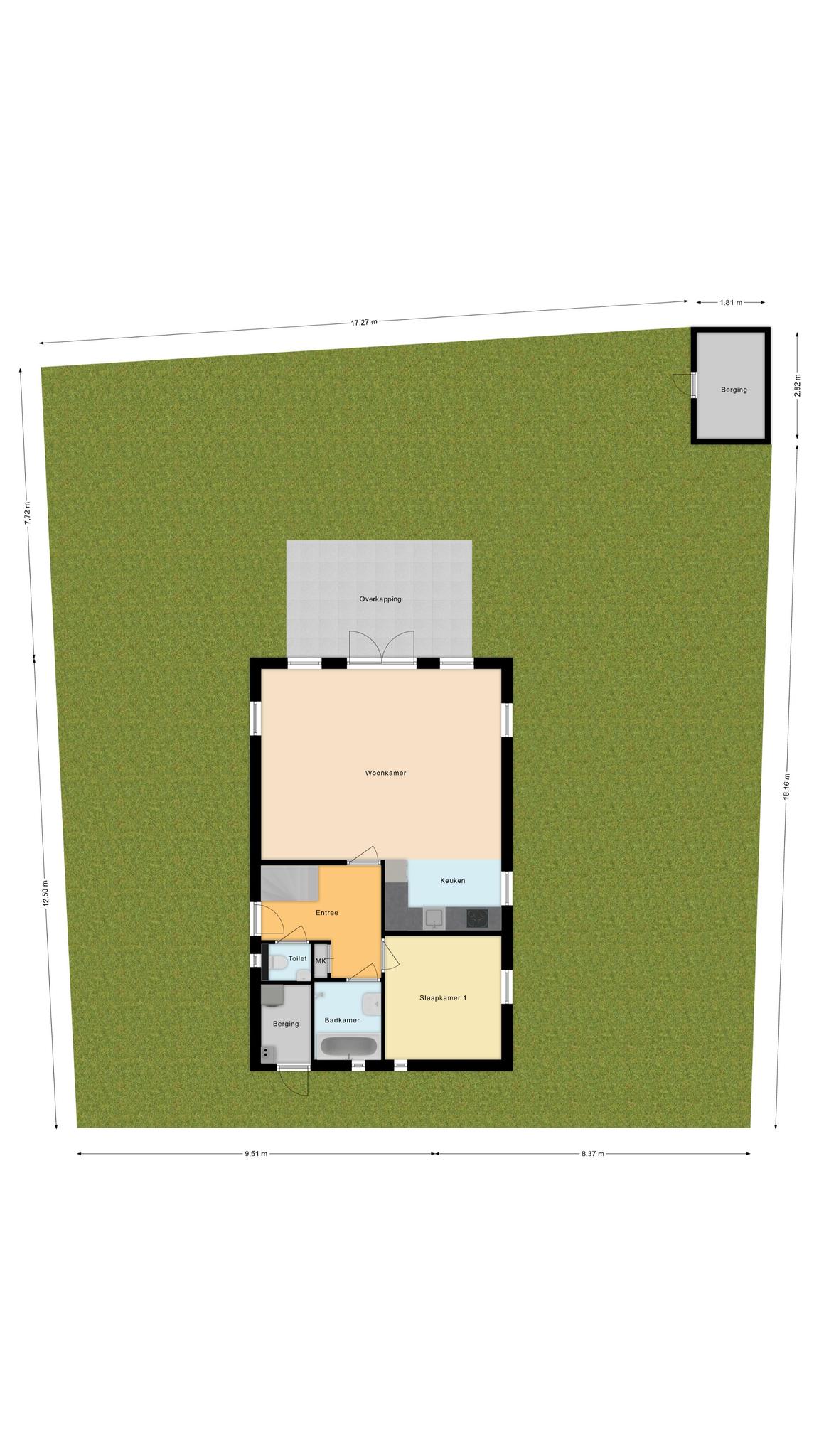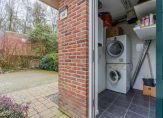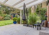Beschutte tuin met veel privacy. Voorzien van een overkapping waardoor je zowel heerlijk kunt genieten van de zon als van de schaduw. Daarnaast is er een houten berging aanwezig voor extra opslagruimte.