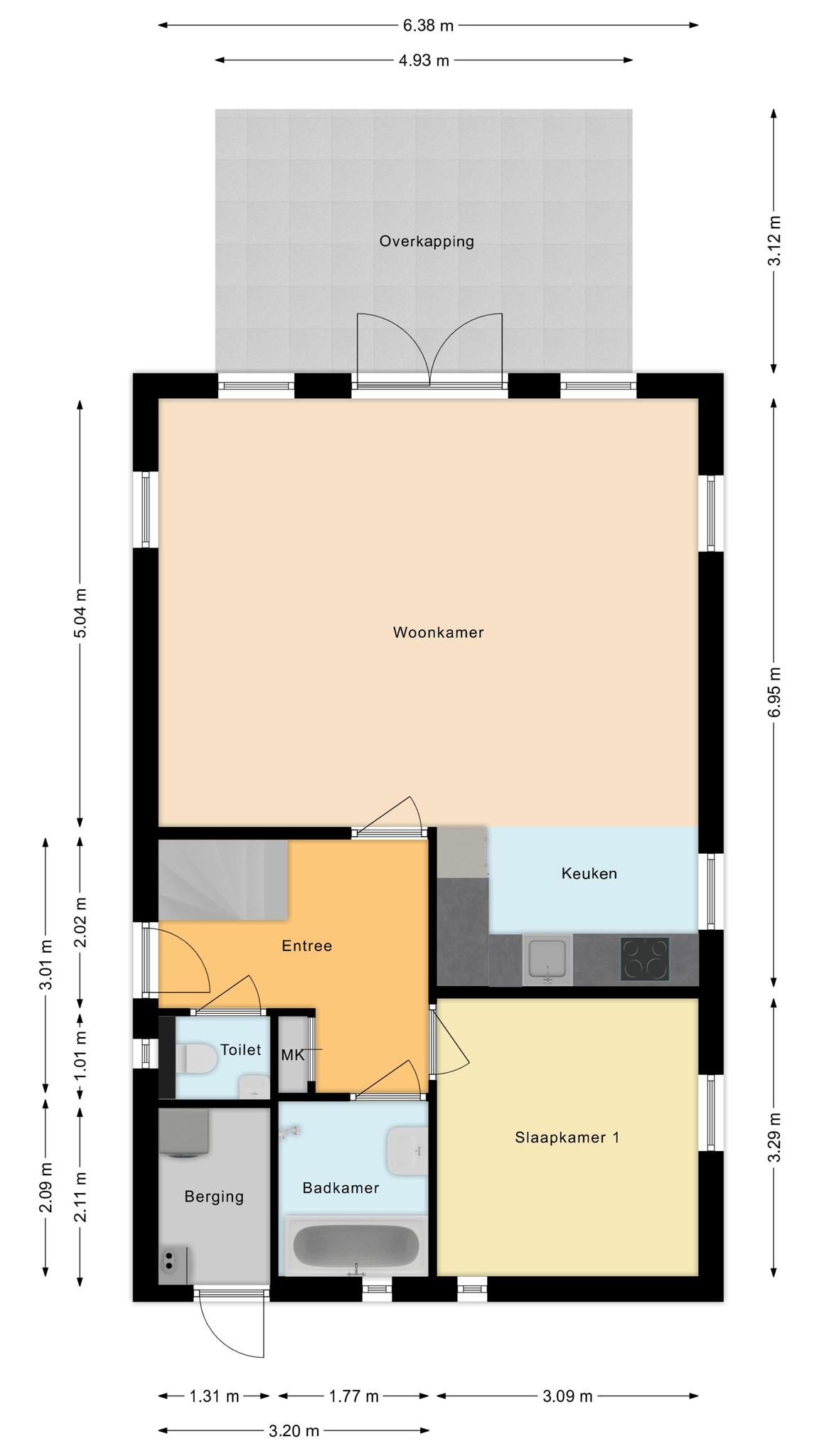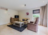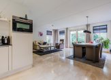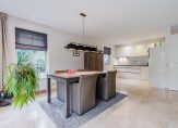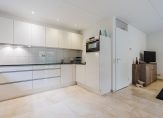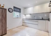 Bij binnenkomst via de hal heb je toegang tot het toilet, een slaapkamer en de badkamer, die is voorzien van een ligbad, douche en badmeubel. De royale en lichte woonkamer beschikt over openslaande deuren naar de tuin en staat in open verbinding met de moderne keuken, uitgevoerd in een lichte kleurstelling en voorzien van inbouwapparatuur.