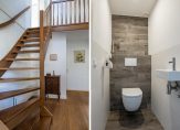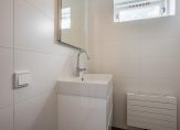 Entree/hal voorzien van een modern, vernieuwd toilet (2020). Vanuit de entree/hal is er toegang tot de slaapkamer met aangesloten badkamer (vernieuwd in 2022) en de ruime woonkamer met eethoek en toegang tot zeer goed onderhouden tuin.
