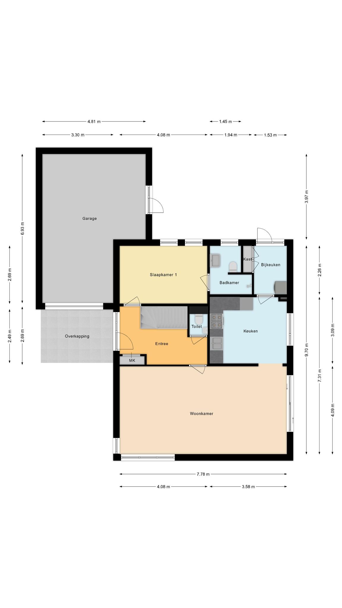 – Garage biedt ruimte voor 1 auto en een ander voertuigen zoals motoren