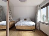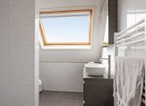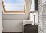 Badkamer voorzien van regendouche, wastafel en 2e toilet. Het object beschikt over drie slaapkamers (ca. 10m², 11m² en 15m²).
