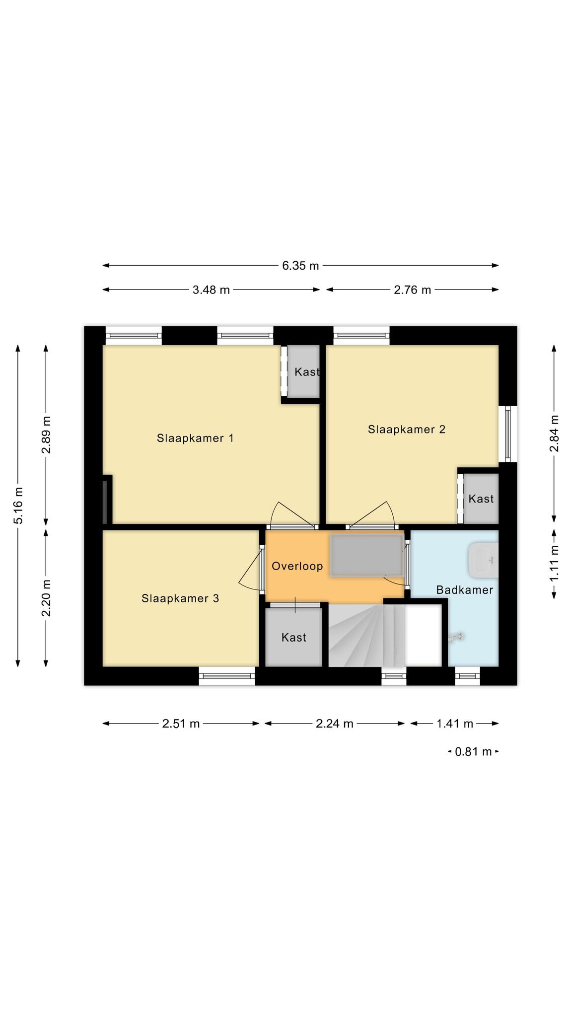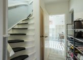De eerste verdieping is te bereiken via de vaste trap in de hal. Hier vind je een overloop die toegang biedt tot drie slaapkamers en de badkamer. Via een vlizotrap is de vliering te bereiken, een handige extra opbergruimte.