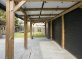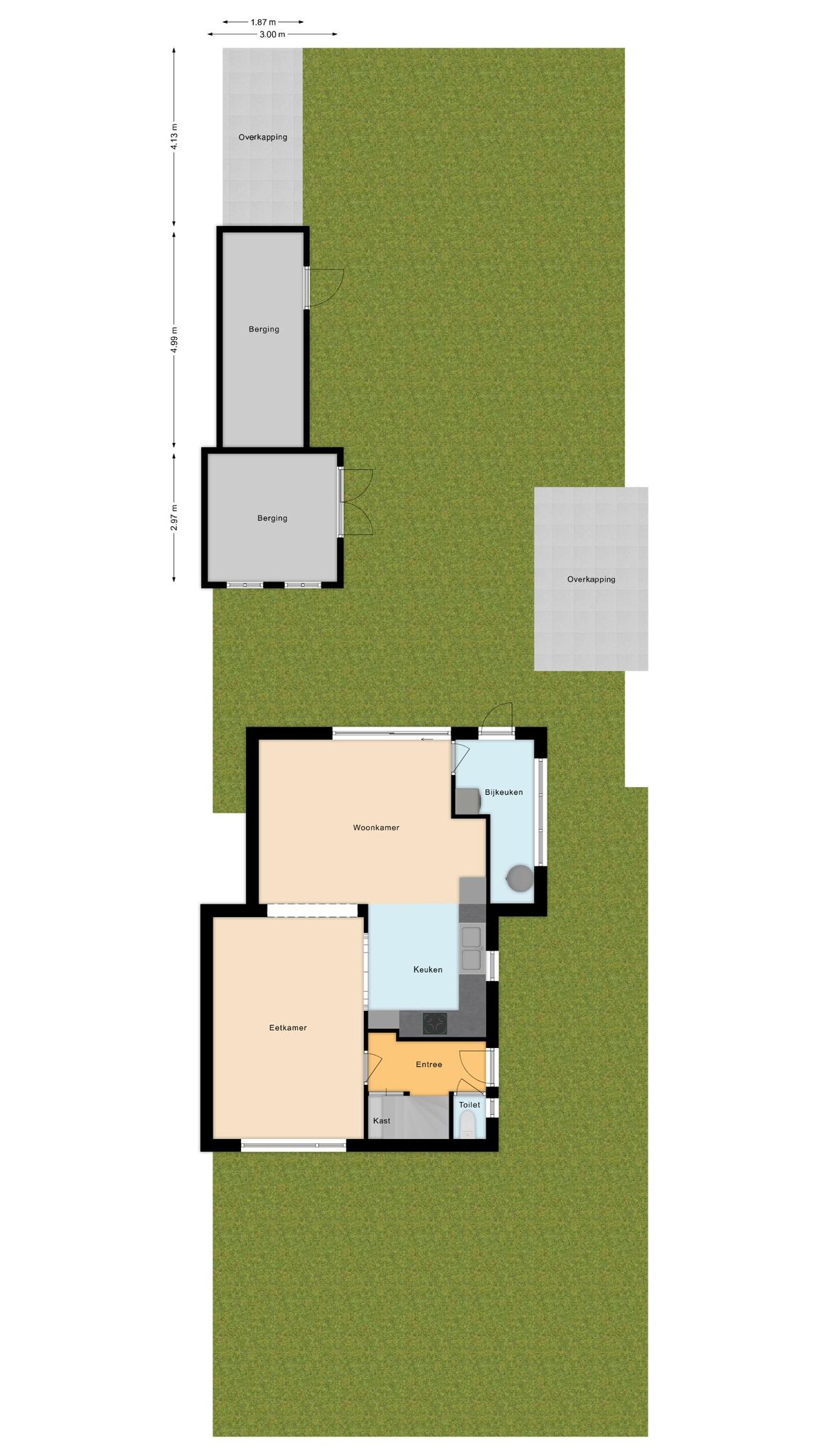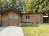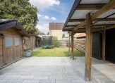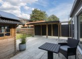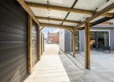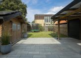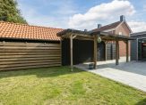 – Vrijstaand houten schuurtje met opbergruimte en overkapping