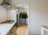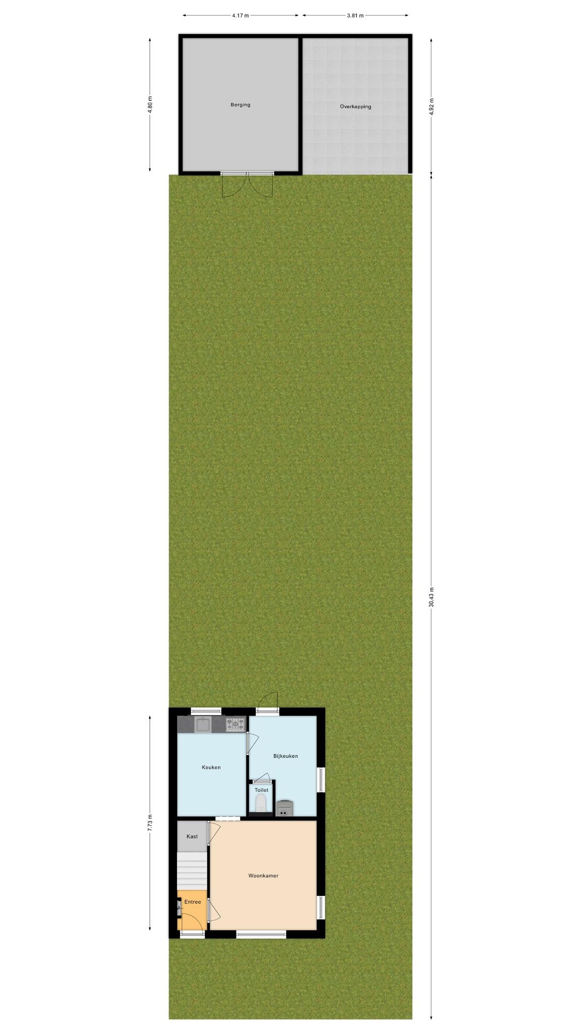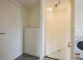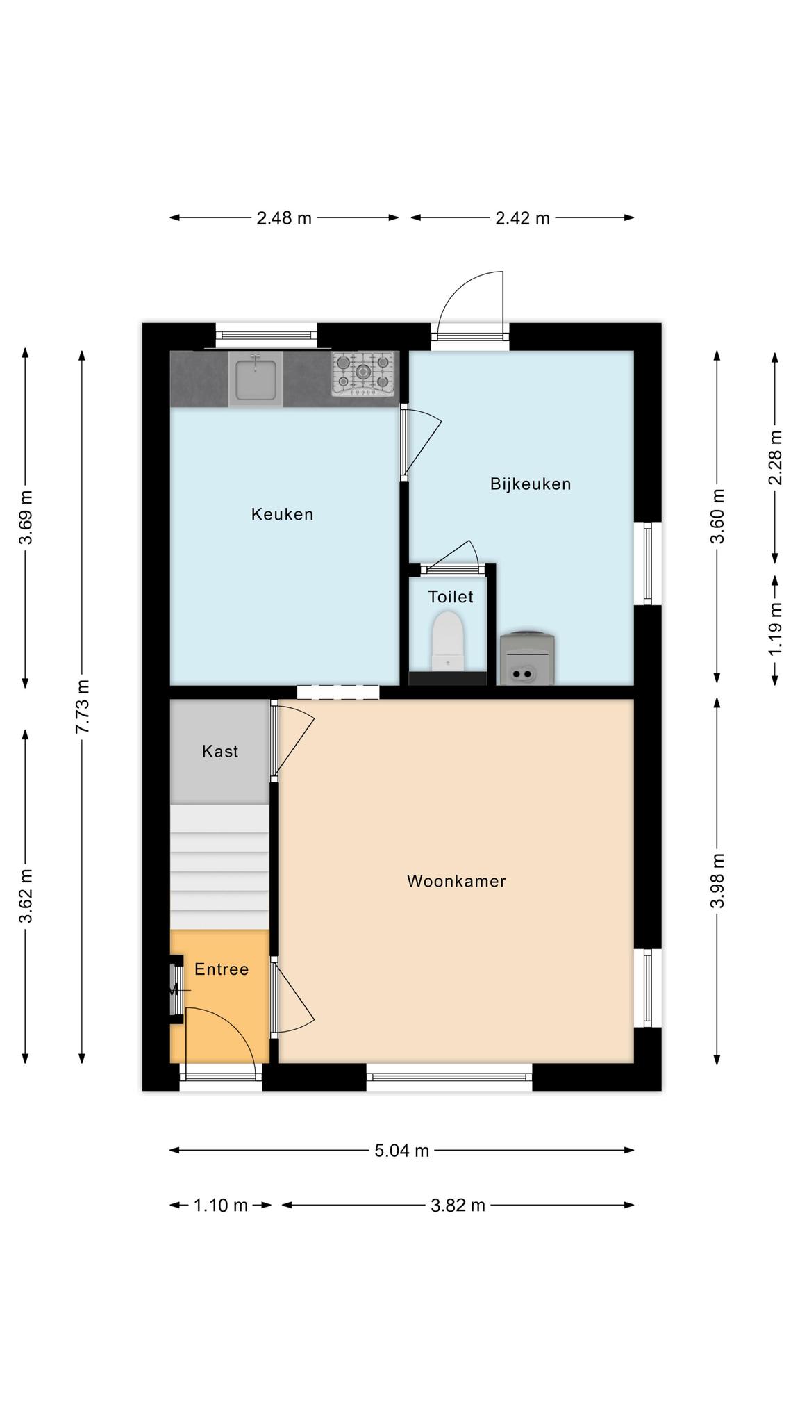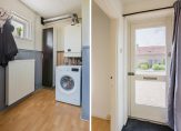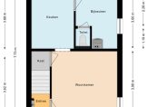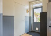 Bij binnenkomst kom je in de hal, die toegang biedt de lichte woonkamer. Deze ruime woonkamer is de centrale plek in huis, met voldoende ruimte voor een gezellige zithoek. De aansluitende leefkeuken biedt een fijne plek om te koken en te eten. Vanuit de keuken kom je in de bijkeuken waar zich het toilet bevindt en waar er plaats is voor de wasmachine en extra opslag.